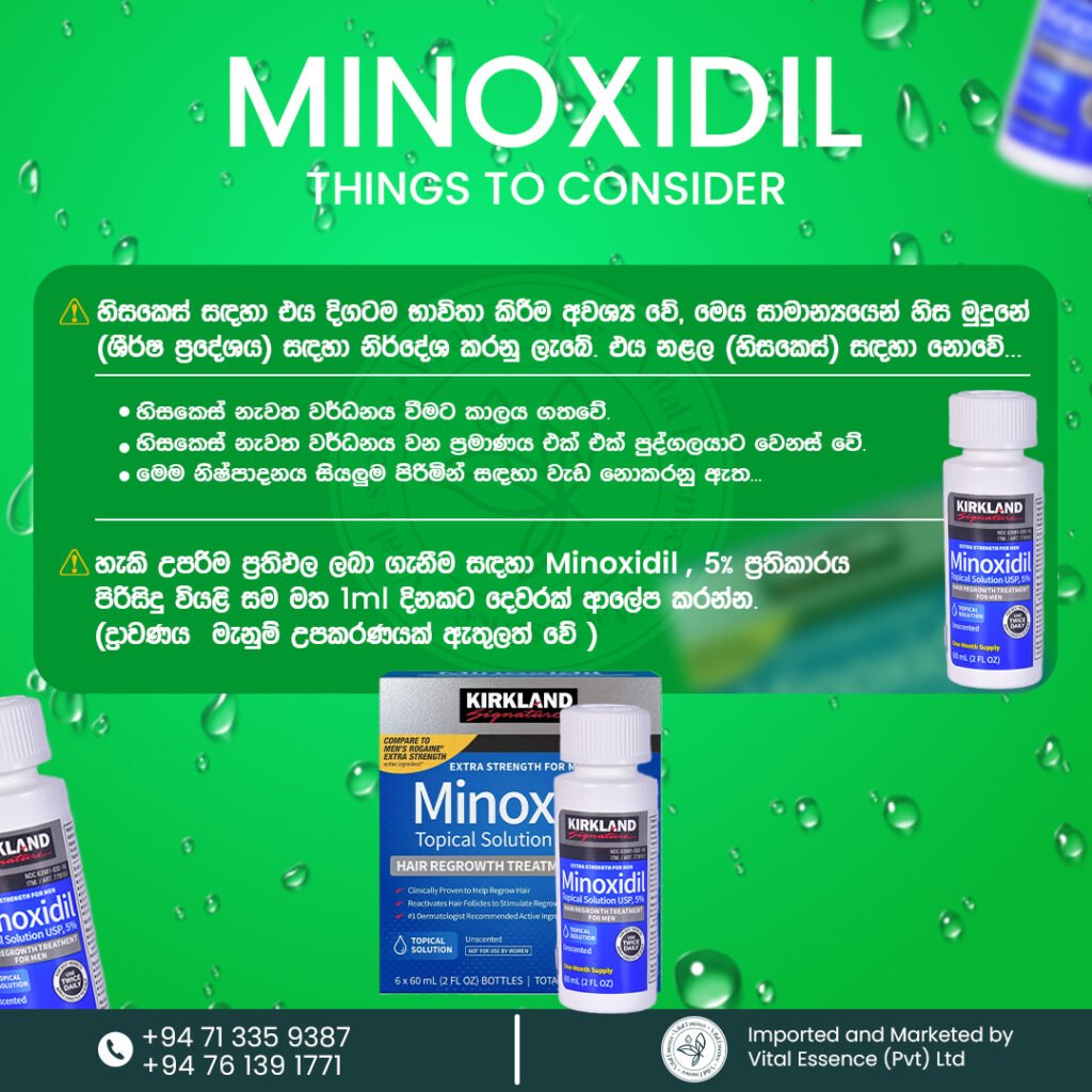 Continuous use of minoxidil topical solution 5% is needed to maintain hair regrowth.If you stop using minoxidil topical solution 5%, you will lose your newly regrown hair in 3 to 4 months.